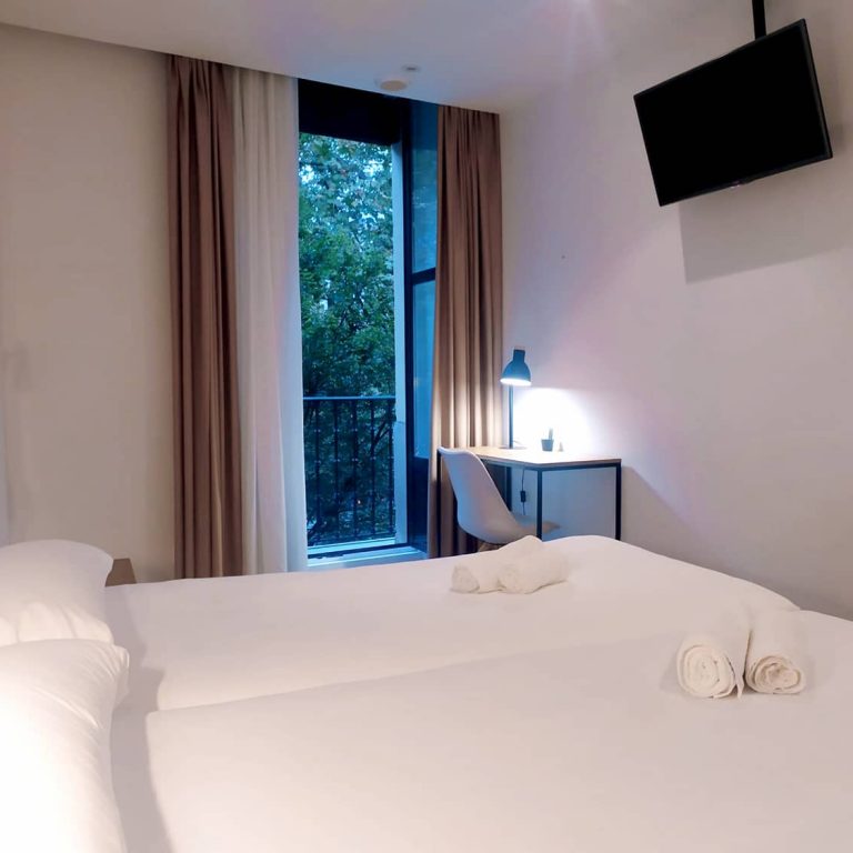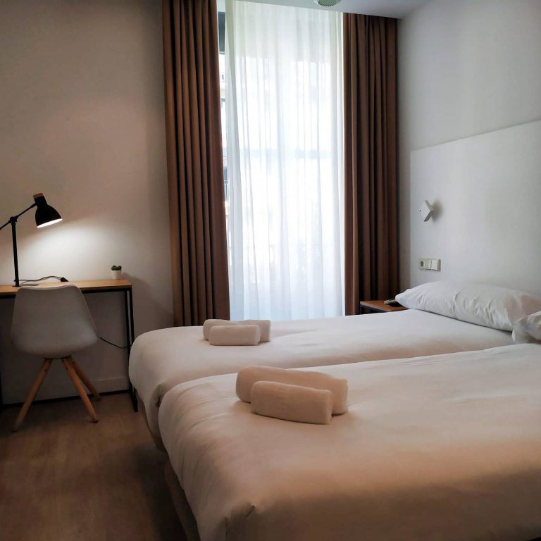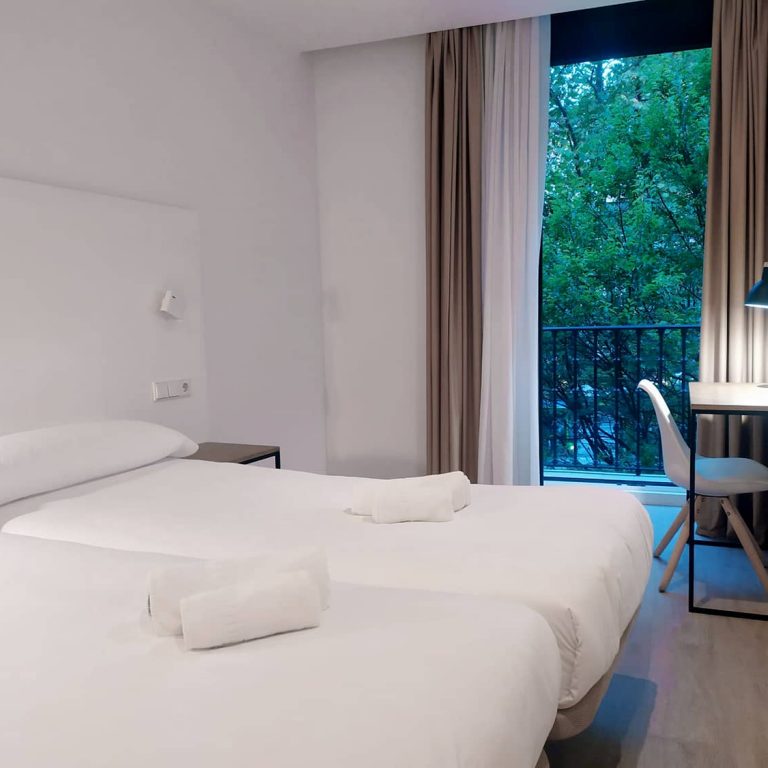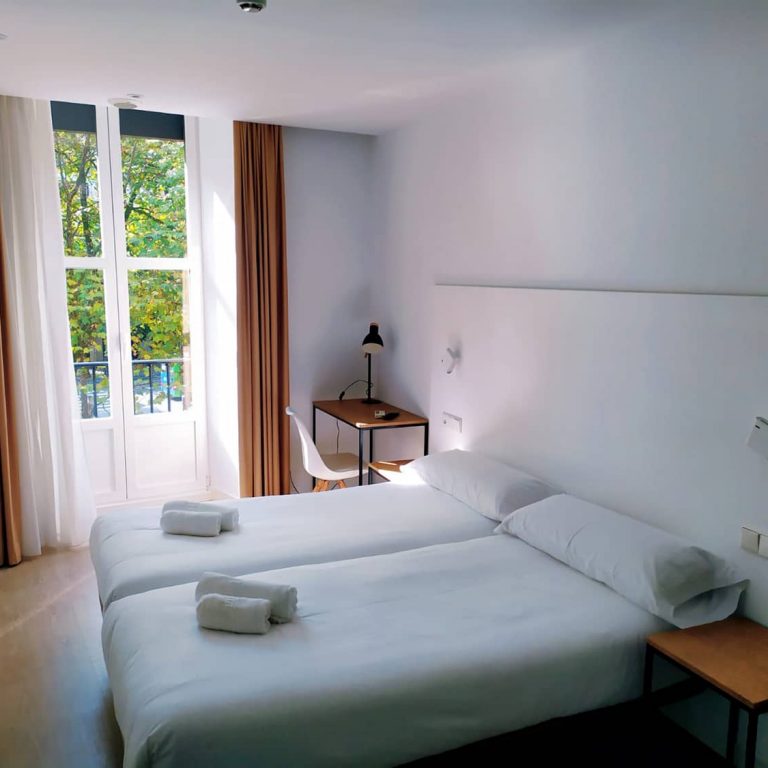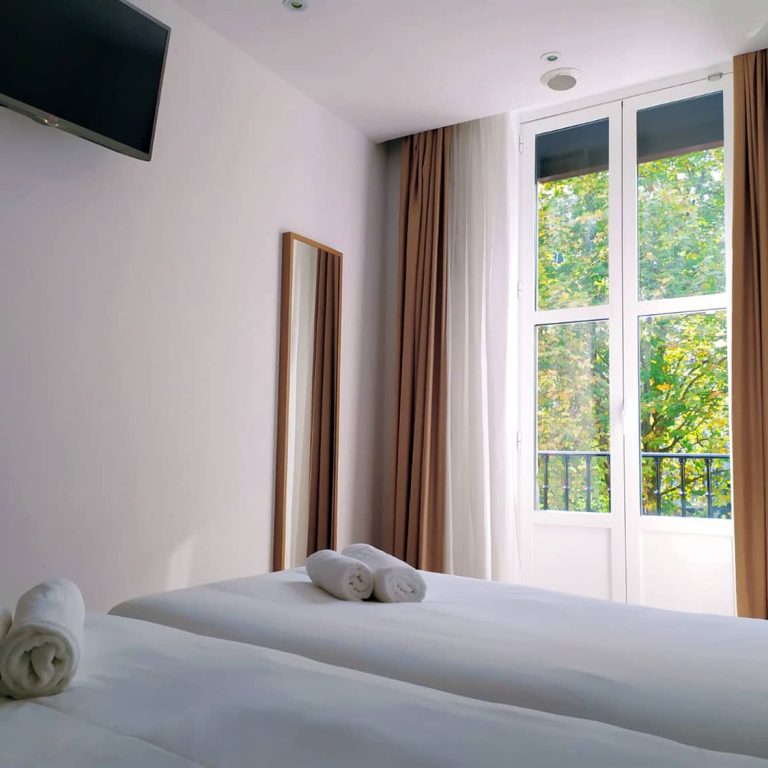 Disfruta de todas las comodidades desde esta habitación luminosa, mas amplia que la doble estandar, con 2 camas o 1 cama doble y con magníficas vistas al Bulevard donostiarra o Plaza Sarriegi, desde su privilegiado balcón. Las ventanas son de doble cristal.